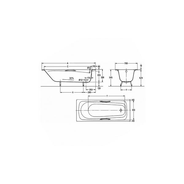 Чугунная ванна MELANIE Е 2925 с отверстиями для ручек