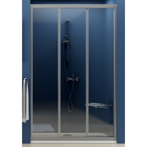 ASDP3-130 душевая дверь раздвижная, 3-х элементная. Профиль - белый, витраж - стекло или полистирол, декор - Transparent или Pearl.