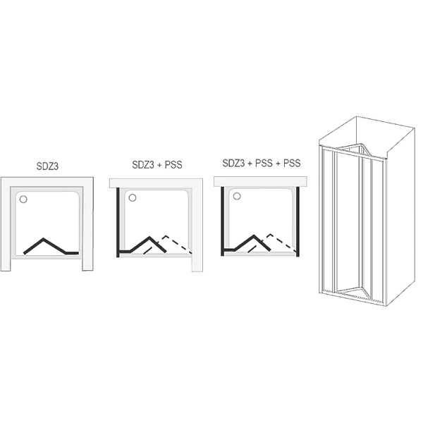 Устанавливается на поддоны RAVAK Aneta, Angela, Perseus, Perseus Pro, Perseus Pro Flat, Perseus Pro Chrome, Gigant Pro, Gigant Pro Flat, Gigant Pro Chrome или непосредственно на пол со встроенным душевым каналом или трапом. С помощью комбинации с одной неподвижной стенкой PSS создадите «Г»-образный душевой уголок, с двумя стенками PSS - «П»-образный душевой уголок.