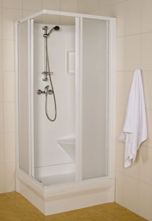 - функциональная душевая кабина включает в себя задние акриловые стенки с сиденьем - душевой поддон с экраном - душ - смеситель - сифон - магнитные водонепроницаемые уплотнители - сверху и снизу душевые двери укреплены на легко скользящих полозках |