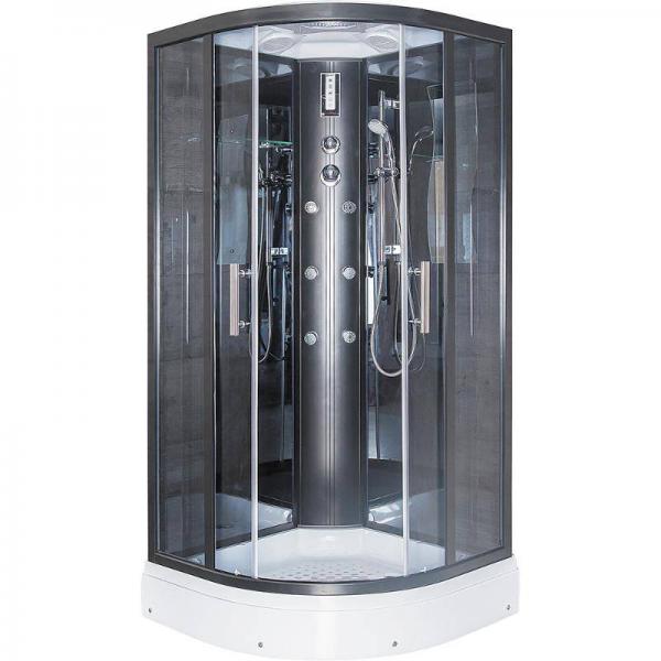 | Тип душевая кабина Форма 1/4 круга Крыша есть Задняя стенка стекло (зеркальное) Центральная стойка есть (пластик, черный) |