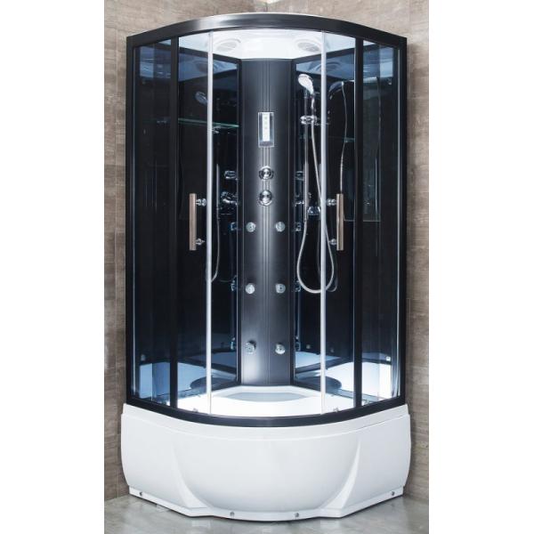 | Тип душевая кабина Форма 1/4 круга Крыша есть Задняя стенка стекло (Зеркальное) Центральная стойка есть (пластик, черный) |