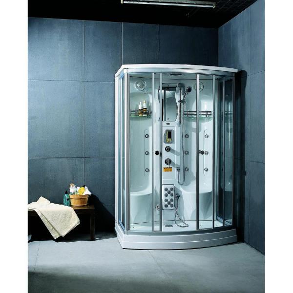 | Турецкая баня, вертикальный массаж, массажер ног , озонация, верхний и ручной душ, радио,пульт,подсветка в кабине, сидение, смеситель, вентиляция, низкий поддон, слив |
