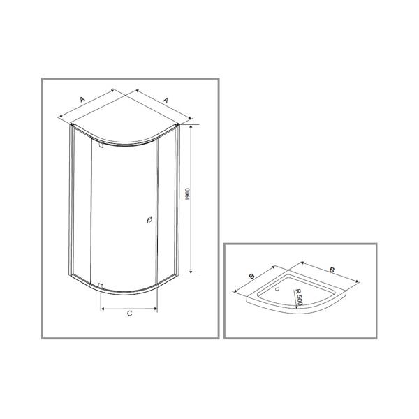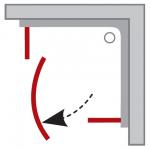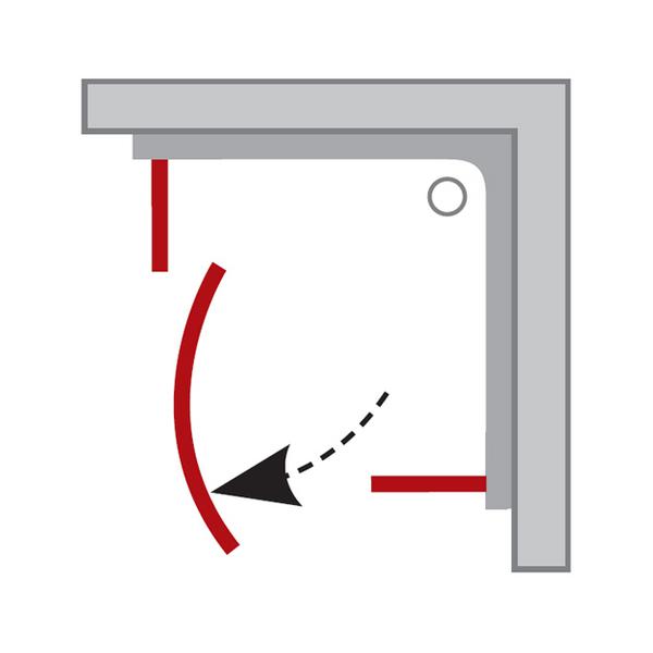 Изделие состоит из двух ровных неподвижных частей и одной изогнутой части, образующей двери поворотного типа. Высота изделия 1900 мм. Поворотом изделия на 180° получите левый или правый варианты открывания дверей.