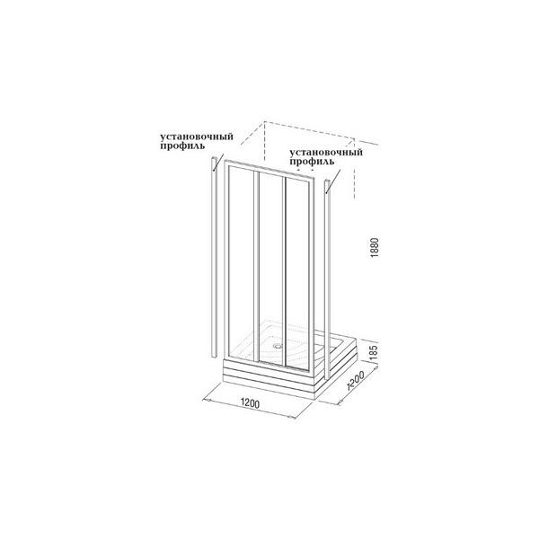 Душевые двери раздвижные трехэлементные предназначены для перекрытия пространства, закрытого с трех сторон (ниши).