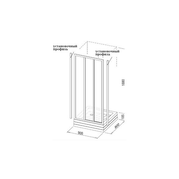 Душевые двери раздвижные трехэлементные предназначены для перекрытия пространства, закрытого с трех сторон (ниши).