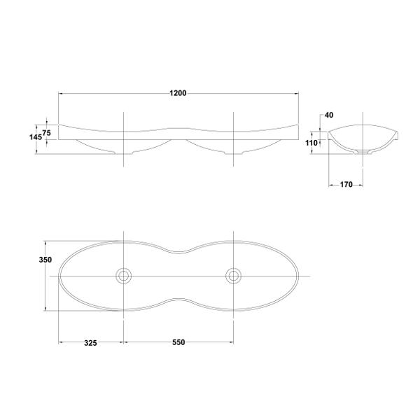 Двойная накладная раковина 120*35 см Gala Klea 33030