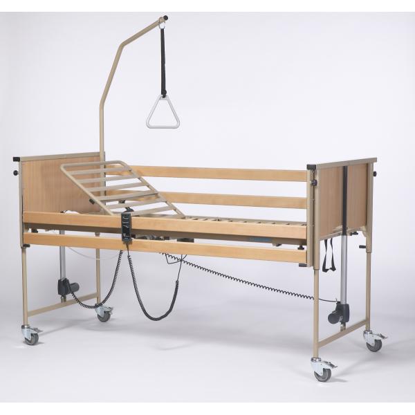 Кровать медицинская функциональная Vermeiren Luna Basic предназначена для обеспечения оптимального ухода за людьми с ограниченными возможностями, как в условиях стационара, так и в домашних условиях. Кровать практична и удобна в обращении. При помощи регулировок достигается наиболее комфортное положение пользователя для отдыха и сна. Ложе кровати четырехсекционное, регулируется по высоте. Три секции с электрическими регулировками угла наклона и одна фиксированная (тазовая). Боковые ограждения подвижные, легко поднимаются и опускаются. На кровати установлены надежные двигатели Датской фирмы Linak. Помимо регулировки угла наклона секций, имеется функция АнтиТренделенбург. Все регулировки электрической кровати осуществляются при помощи пульта управления с возможностью блокировки клавиш специальным магнитным ключом. Кровать оснащена четырьмя колесами с индивидуальными тормозами-фиксаторами. Все металлические детали кровати покрыты методом порошкового напыления, оцинкованы и хромированы.