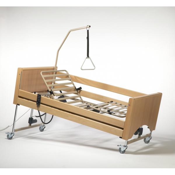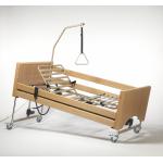 Медицинская кровать для лежачих больных Vermeiren Luna представляет собой изделие конструктивного дизайна, состоящее из двух головных частей, основания под матрац, четырех боковых ограждений и приспособлением для подтягивания с ручкой для захвата. Пользователю предоставляется возможность регулировки высоты основы матраца, настройки спинной и тазобедренной секции. Данная модель обладает четырьмя колесами с тормозами и индивидуальной блокировкой. Металлические части производитель покрывает с помощью метода специального порошкового напыления, оцинковывает и хромирует. Ограждения, такие как изголовье, изножье, боковины - выполнены из древесных материалов, хорошо отполированы, не содержат металлических вставок.
