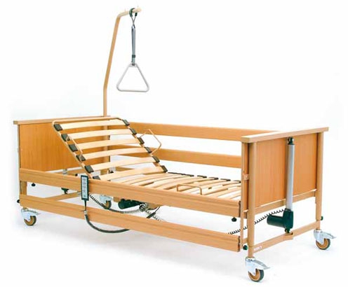 Функциональная кровать может использоваться в домашних и стационарных условиях. Классический дизайн и натуральное дерево, без «больничных» элементов, отлично впишутся в интерьер спальни.
