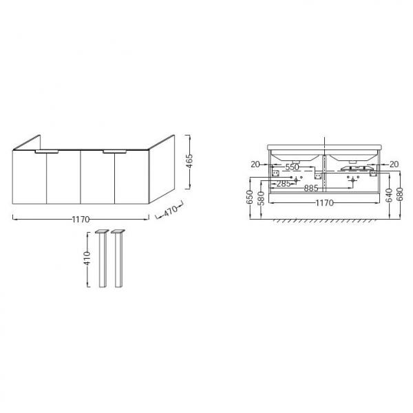 Мебель 117 см для раковины-столешницы 120 см Jacob Delafon Struktura EB1203-N18