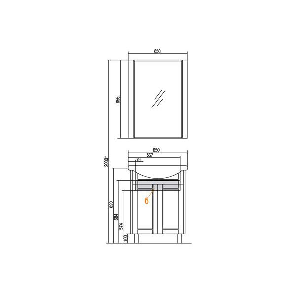 Комплектация: ручка - 2, полка - 1, ножка - 4,раковина «ЛАГУНА» 65 см (арт. 6531)