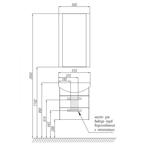 Подвесная модель из коллекции «Ария». В тумбе – два выдвижных ящика из влагостойкой ДСП, верхний из которых снабжен организацией пространства. В колонне внизу откидной фасад с бельевой корзиной, а за верхним распашным фасадом расположены регулируемые по высоте полочки. Зеркало выполнено в популярном минималистическом стиле, не занимает много места и при желании может быть укомплектовано полкой «Ария 50». Модель выпускается в белом, черном и темно-коричневом глянцевых цветах.