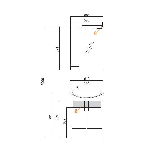 Описание: полка-1, ручка-2, раковина Волга 61 см, либо Акварель 60. Тумба на 2 ножках.