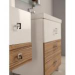 Вместительная модель, отделанная "под дерево", предназначенная для больших ванных комнат. В ней сочетается два главных требования к мебели для ванных комнат: функциональность и дизайн. Комплектуется удобной керамической раковиной, являющейся воплощением комфорта и плавности линий. На ее поверхности достаточно места для размещения различных предметов гигиены, а глубина и объем чаши удобны для умывания. В тумбе два глубоких ящика, и один узкий (средний), что позволит Вам грамотно разместить все предметы гигиены. Зеркало, оснащенное выключателем с розеткой, украшено гравировкой, которая подсвечивается изнутри встроенным светильником. К нему дополнительно предлагается стеклянная полка. При желании вместо зеркала можно выбрать зеркальный шкаф с открытыми полками по бокам и превосходной системой передвижения зеркального фасада. Защитная декоративная полоса на зеркальном полотне избавит от неприятных отпечатков пальцев. Дополнительный функционал обеспечивает шкаф-колонна, с двумя компактными выдвижными ящиками и регулируемыми по высоте внутренними полками за распашным фасадом.