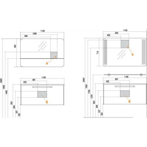 Цена указана за комплект тумба с раковиной и зеркалом.