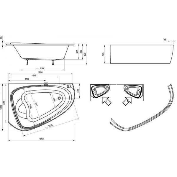 - Форма ванны асимметричная