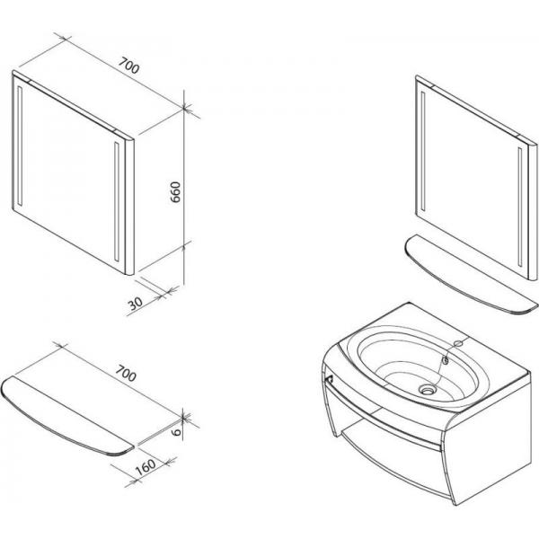 в размере 700 x 160 x 6 мм (ш/г/в).