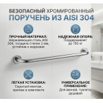 Поручень скоба настенный 100см. -Изготовлен из высококачественной нержавеющей стали AISI 304, -устойчив к коррозии и деформации даже в условиях повышенной влажности.