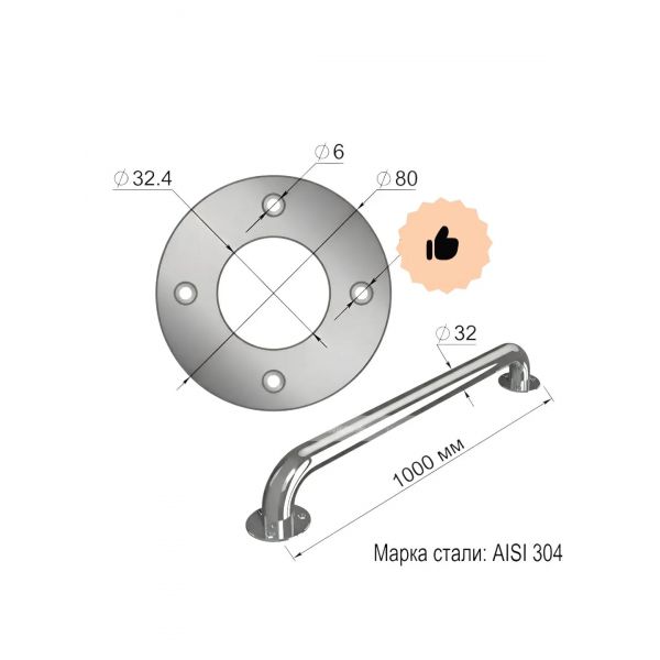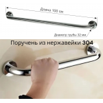 Поручень настенный опорный Материал: нержавеющая сталь марки 304 Покрытие: Матовое полированный размер: 1000 мм. диаметр трубы: 32 мм. толщина: 2 мм. качественная нержавеющая сталь марки 304