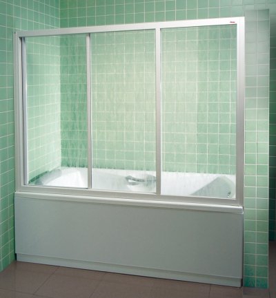 Двери для ванн раздвижные трехэлементные состоят из трех одинаковых частей,одна из которых является неподвижной и две раздвижные. Данные двери для ванн подходят для ванн установленных в нише.Так как и у других дверей, поворотом дверей для ванн на 180°получим вариант входа справа или слева. Комбинированием этих шторок с одной неподвижной стенкой для ванн (APSV) или двумя герметично закроем пространство около целой ванны, а тем получим душевой уголок.
