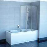 VS3 130 шторка для ванны складная. Профиль - белый, витраж - полистирол, декор - Rain.