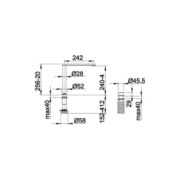 • Высокий излив для удобного наполнения ваз или высоких кастрюль