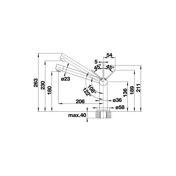 Угол поворота — 140°.