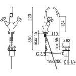 Двухвентильный смеситель для биде NOBILI CARLOS PRIMERO T3 TEKI CP219/1T3CR с защитой аэратора от накипи и донным клапаном.
