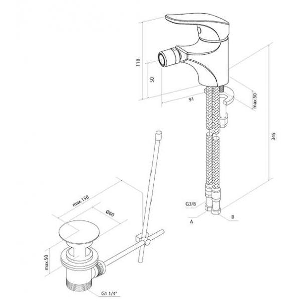 Смеситель для биде с д/к, излив 91 мм AM.PM. Joy F8583100