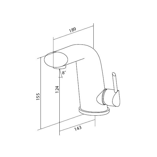 - Излив: длина 143 мм, высота 124 мм