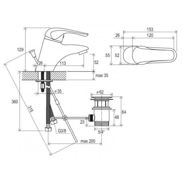 Смеситель для умывальника с донным клапаном Ravak X070010