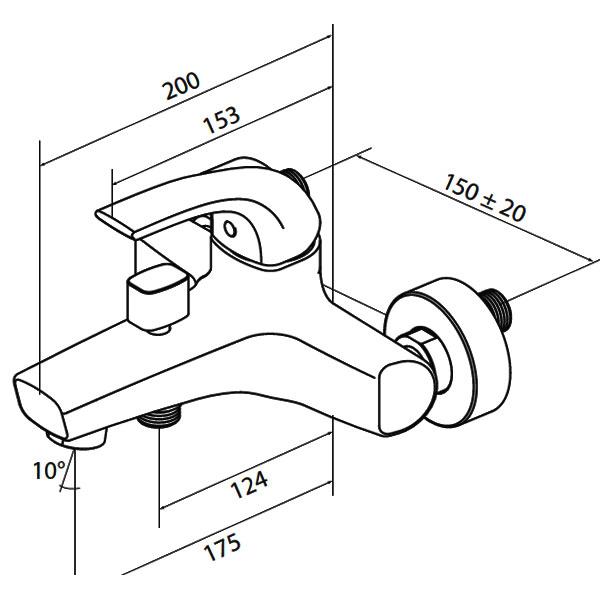 Смеситель для ванны и душа, излив 175 мм AM.PM. Sense 5 F7510000