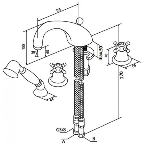 Смеситель на борт ванны, трехсекционный, излив 195 мм AM.PM. 5 O'Clock F2501300