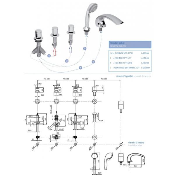 Смеситель на борт ванны врезной, состоит их пяти элементов: