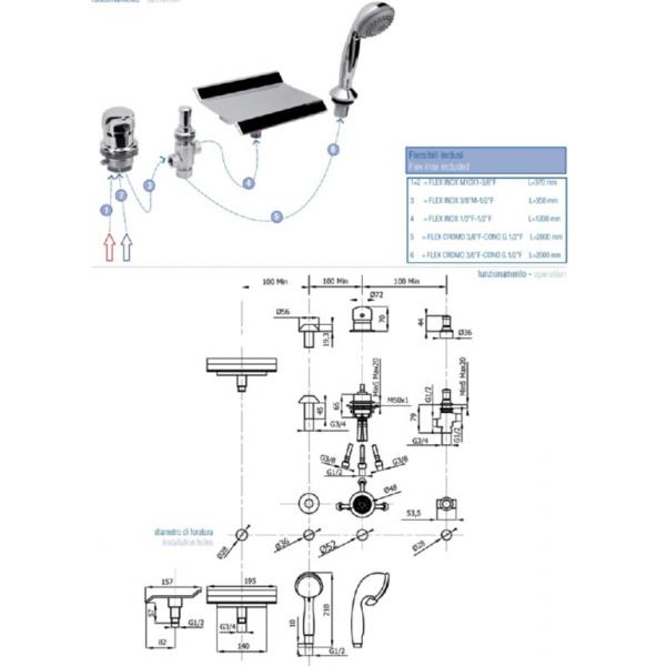 Смеситель на борт ванны врезной, состоит их четырёх элементов: