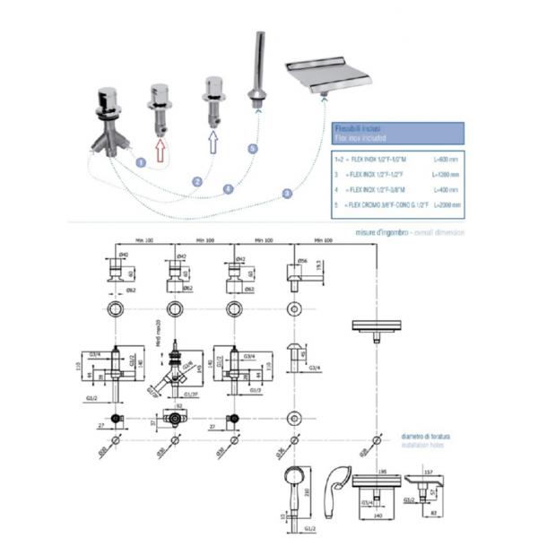 Смеситель на борт ванны врезной, состоит их пяти элементов: