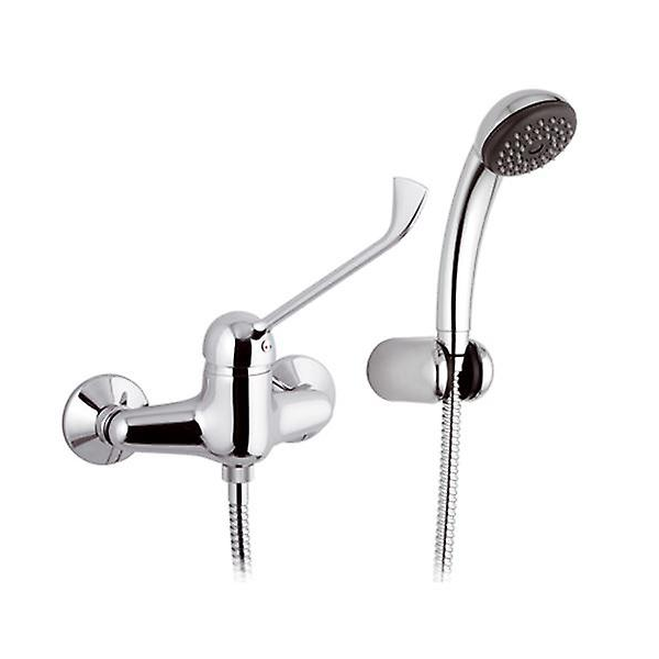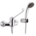 - Смеситель крепиться на стену. В комплекте к ниму идут эксцентрики и чашки-отражатели. Шланг, лейка и держатель лейки тоже поставляется в комплекте. Место установки смесителя для инвалидов- это душевая кабина или ванная.