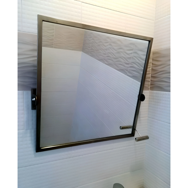 Поворотное зеркало для МГН является неотъемлемой частью адаптации санитарных комнат. Каркас оборудован поворотным механизмом. Наличие эргономичной ручки даёт возможность людям в инвалидных креслах самостоятельно регулировать угол наклона для беспрепятственного использования изделия по назначению. Зеркало характеризуется долгим сроком службы и повышенной безопасностью.