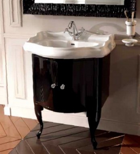 Тумба черная под раковину 69, две серебряные ножки, ручки стекло хр. RETRO KERASAN 7361K3