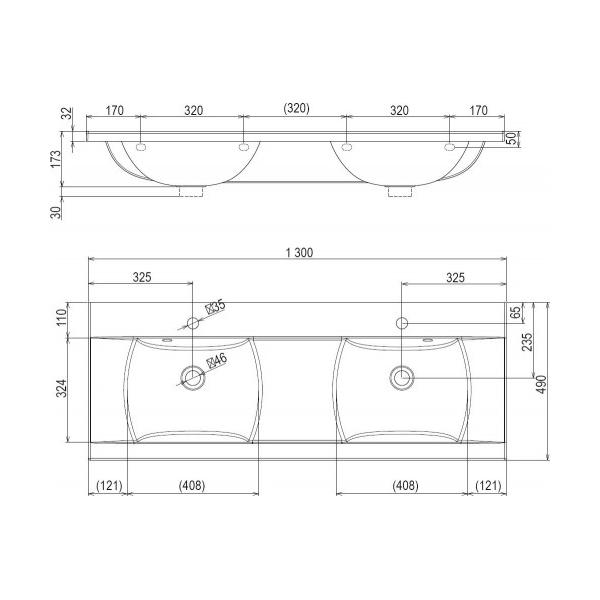 - Форма умывальника – прямоугольная;