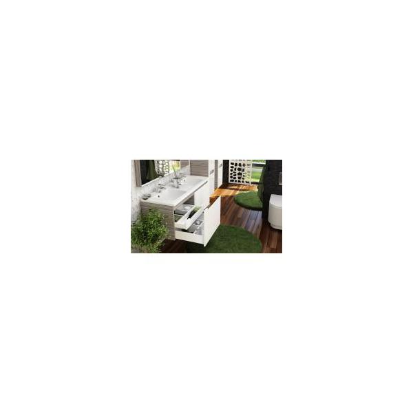 Отдельно расположенный двойной умывальник можно установить на стену или дополнить шкафчиком под умывальник.