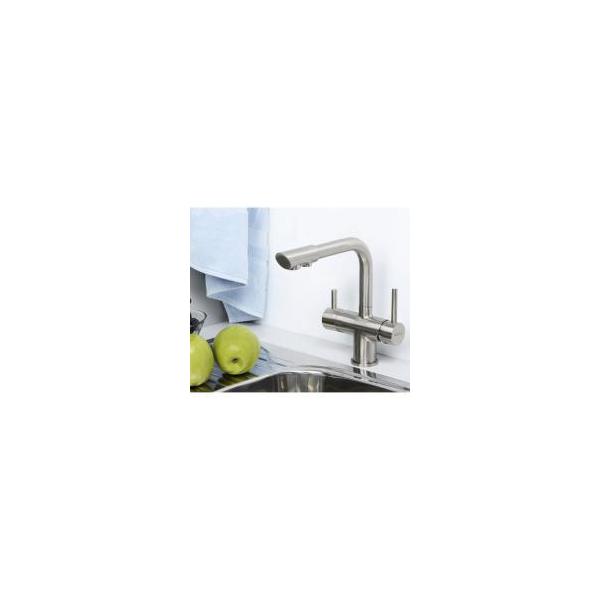 Смеситель с возможностью подключения любого стандартного фильтра для очистки воды. Регулировка подачи очищенной питьевой воды осуществляется с помощью поворота ручки смесителя.