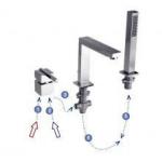 Регулировка температуры и давления производится блоком управления. Душевая лейка устанавливается в подставку, крепящуюся на борт ванны, рядом с остальными блоками. Длина шланга соединяющего излив и душевую лейку составляет 2 метра. Шланг легко вытягивается из подставки при использовании душа. Защищён от перетирания и чрезмерного перегиба.