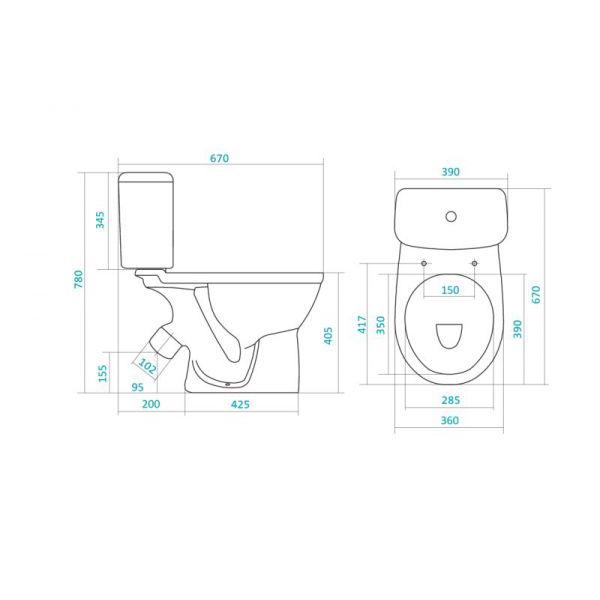Унитаз-компакт с косым выпуском в комплекте с арматурой, жестким сиденьем и креплением.