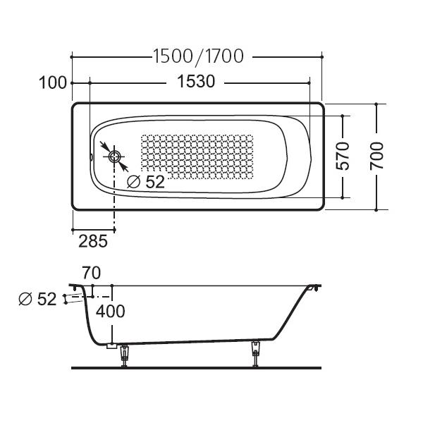 Конструкция ванны Roca Continental 160х70 обеспечивает комфортное и безопасное использование. Дно выполнено с антискользящим покрытием, а легкий наклон в сторону сливного отверстия исключит застаивание воды.