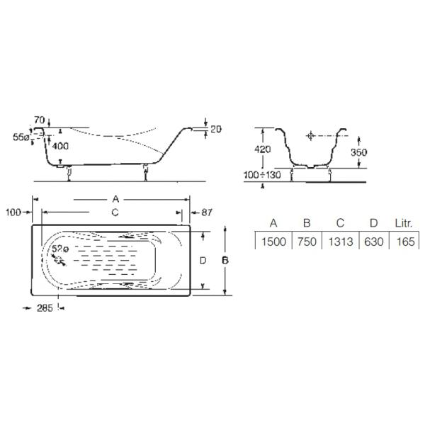Ванна чугунная Roca MALIBU 150х75 231560000