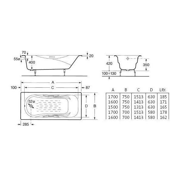 Ванна чугунная Roca MALIBU 170х75 230960000 Без ручек