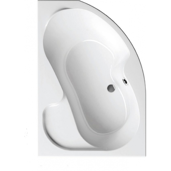 Акриловая ванна 150 см (левая). Асимметричная форма. Белая поверхность. Внешняя поверхность белая. Ванна с монтажом на пол либо подиум.