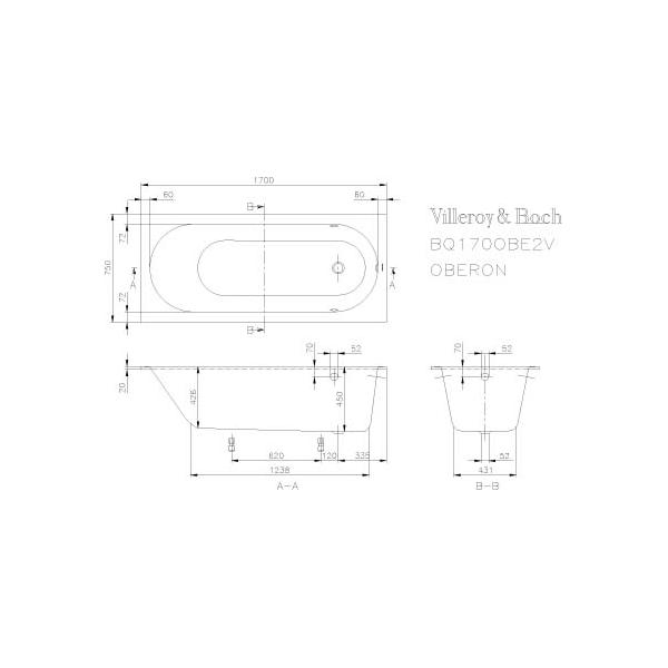 Ванна VILLEROY&BOCH OBERON 1700х750 мм BQ170OBE2V01